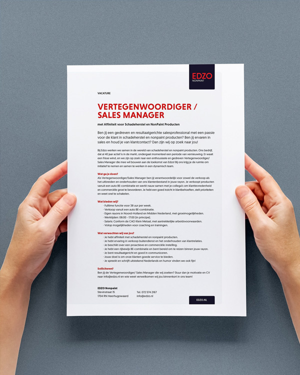 Gezocht: vertegenwoordiger/sales manager