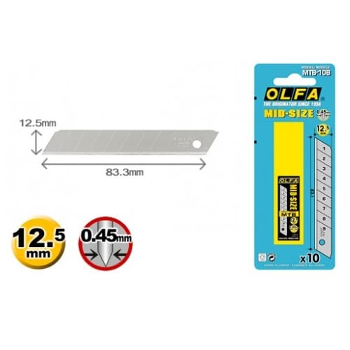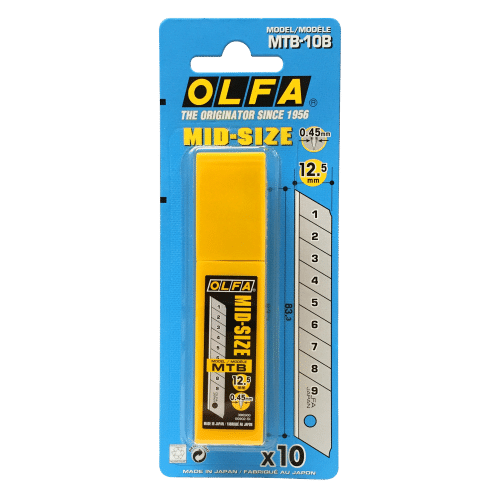 De bladen van 0,45 mm dik zijn gemaakt van hoogwaardig koolstofgereedschapsstaal. OLFA-messen zijn extreem scherp.