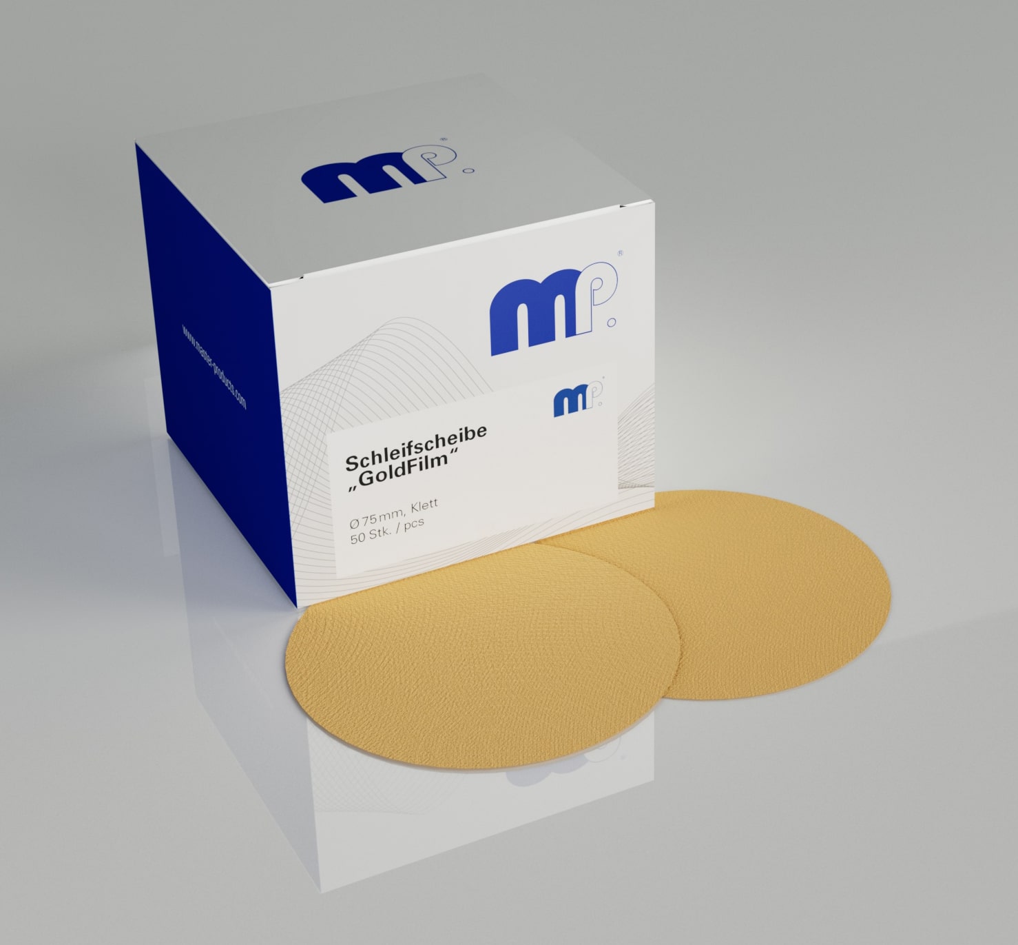 Til uw schuurprojecten naar een hoger niveau met de MP “Goldfilm” 75 mm klittenbandschuurschijven,