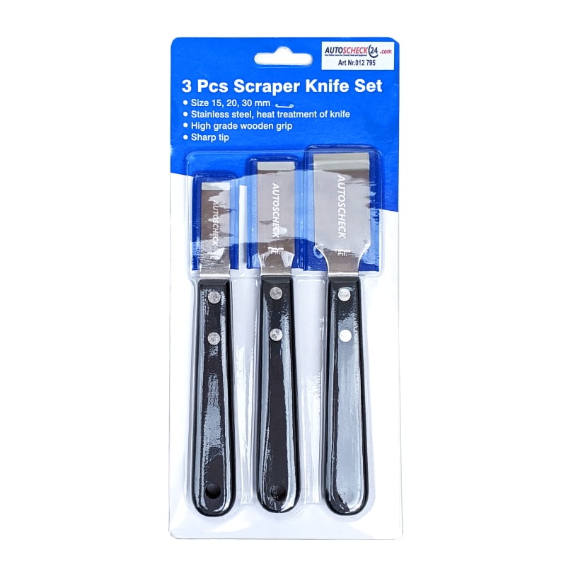 Scrapermessenset 3-delig in de maten 15mm, 20mm en 30mm.