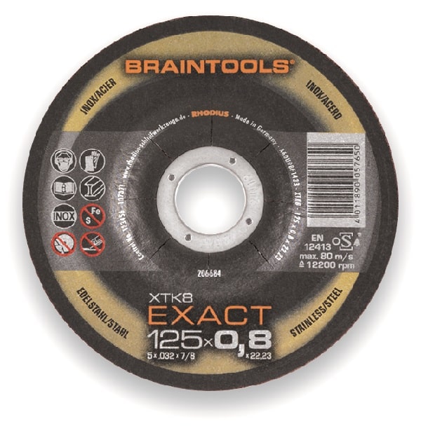 De doorslijpschijf XTK8 Exact is ultra dun. Hierdoor zijn de schijven ideaal voor het bewerken van dunne en massieve materialen. Deze doorslijpschijf snijdt eenvoudig door de lage wrijving aan het materiaal. Zo ontstaat een lagere warmteontwikkeling en wordt de kans op “blauwslijpen” een stuk minder. Door de vrijwel braamloze snede is er een minieme nabewerking nodig.
